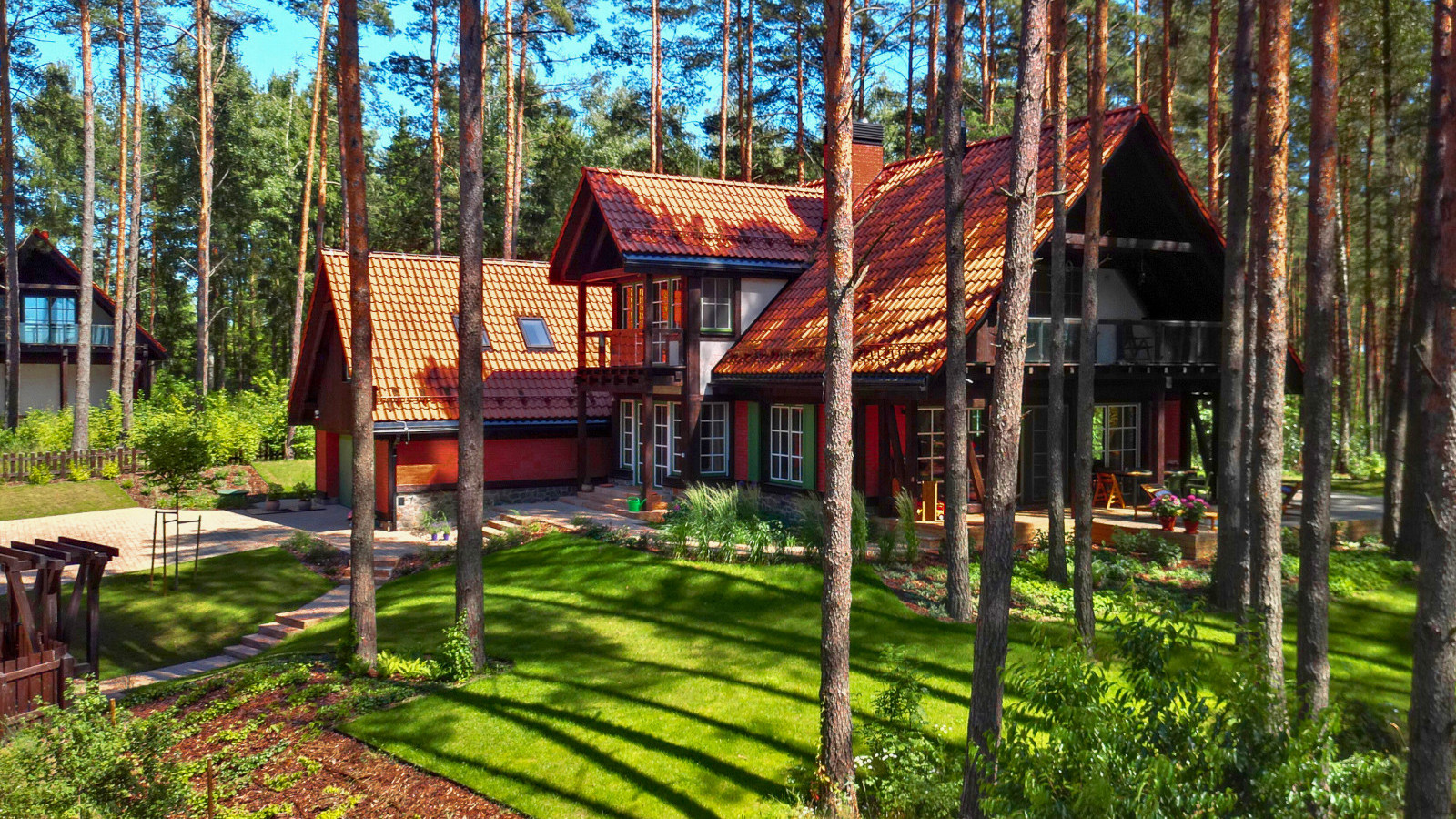 wchodzący w skład kompleksu teren rekreacyjny nad brzegiem jeziora do wyłącznego użytku wszystkich właścicieli willi i ich gości;