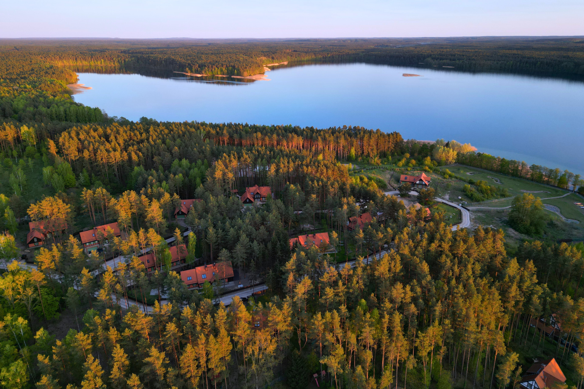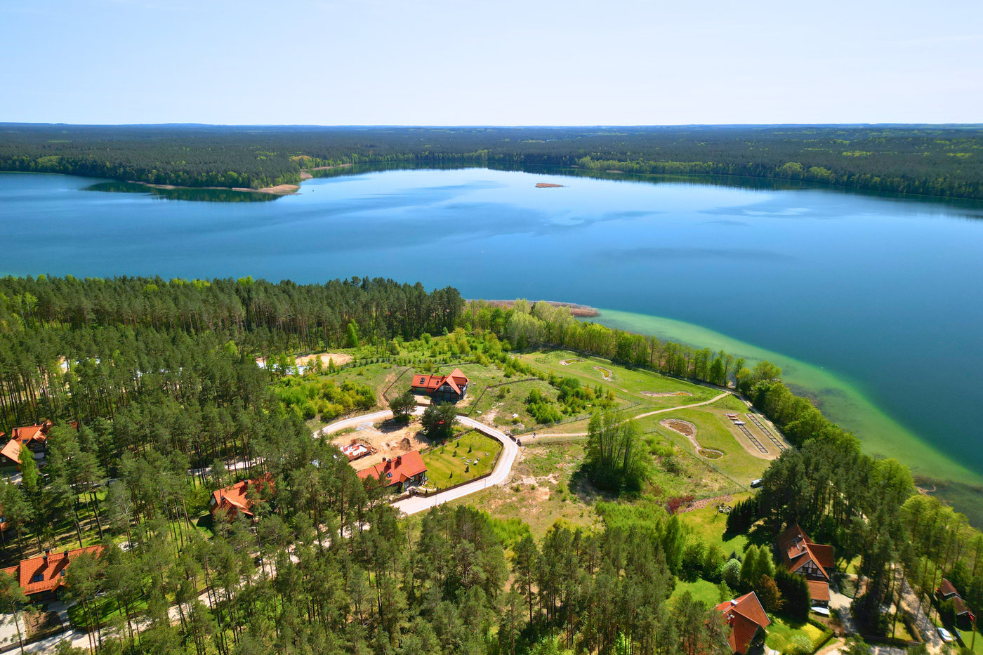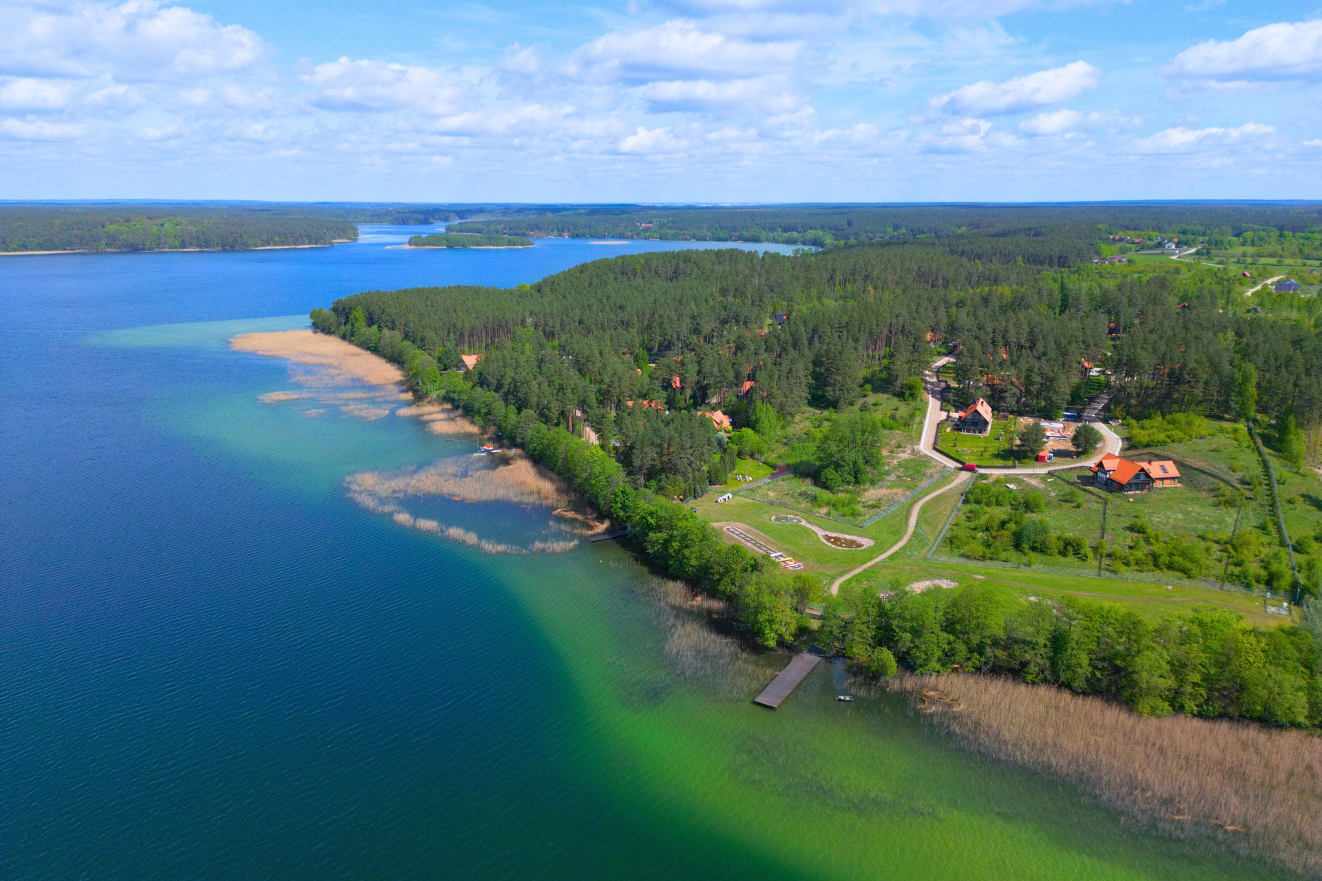 dostęp do brzegu jeziora oraz prywatny pomost do wyłączonego użytku mieszkańców;